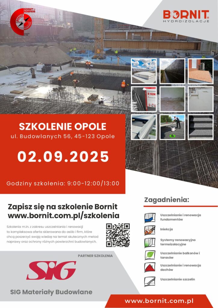 Szkolenie to jest kierowane do projektantów, do kierowników robót/budowy czy inspektorów nadzoru inwestorskiego, dla opracowujących ekspertyzy techniczne, a także każdego uczestnika procesu budowlanego chcącego poszerzyć widzę z zakresu izolacji części podziemnych i nadziemnych obiektów kubaturowych. Uczestnicy szkolenia zapoznają się z systemami izolacji i renowacji ścian, dachów, balkonów i tarasów na bazie doświadczeń firmy BORNIT. Przedstawione zostaną wybrane przykładowe realizacje.